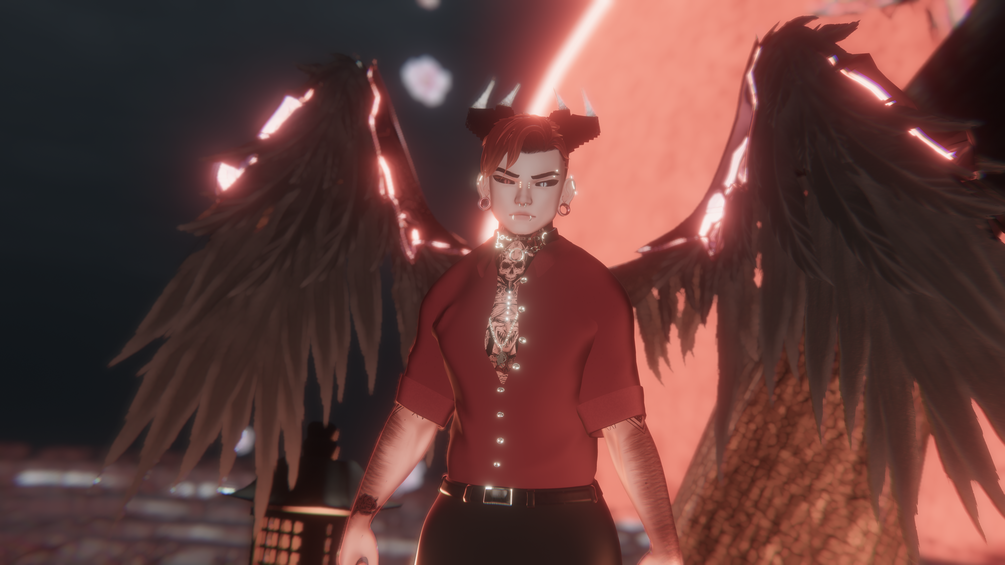 Head:Zinpia (Edited Do Not Reuse)┊ Base:Panda (Heavily Edited Do Not Reuse) ┊Pants (Strap) & Long Sleeve - BerryVee┊Tattoos: MaMachi Designs┊Jacket:Kold┊Jeans:YamuVR┊Pants (Dress):CryBaby┊Chest Harness:Poker Blunders┊Leg Harness: TaylorTxT┊Skinshirt/Boxers:NoahVRC┊Piercings:xSnail & Vampyre ┊Wings: Freya Drake ┊Hair:Jinatonics & MaMachi┊Horns:CupKake┊Trident:Kiwalkishang┊Vape:Sezu┊Lollipop:Wholesome┊Ghost Arms:Sicknesst┊Ace's Shoes:Pokerblunders┊Boots:ultrahighgloss┊MaMachi Logo Charm:Sriツ┊AV3 Toggles:Rafa┊Smooth Gestures:Combo Gestures