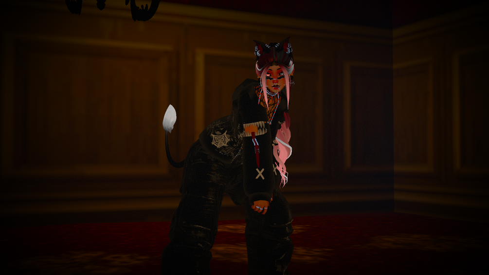 Head:Nessy (Edited Do Not Reuse)┊ Base:Panda(Edited Do Not Reuse)┊Hair Texture: Wetcat [Custom Versions]┊Hair: Nessy 1/2/3/4/5/6 || Jinatonic || Bunisu┊┊Eye Texture: Mowster┊Skin Texture:HoneyLabs┊Makeup Texture: MaMachi┊Ears & Wings: TheThiccWitch┊Tail:Pumpkin┊Beanie:TheThiccWitch┊Piercings/Earrings:MaMachi┊Nip Piercings/Bite Jacket:Bunnico┊Necklaces:MYNK┊Rose Top:karmavrc┊Dress/Crossbody Bag/Baddie Outfit v1:Moobean[Retired]┊Grunge Set:berryvee┊Baggy Pants:Lili┊Joggers:yukiookami┊J's:Voidane┊Thigh High Boots:lili┊Knife (MaMachi Exclusive, Do Not Resuse):Krismagie┊MaMachi Logo Charm:Sriツ┊AV3 Toggles:Rafa┊Smooth Gestures:Combo Gestures┊SPS:VRCFury┊SPS Config:Wholesome┊All Retextures by foxmatcha & S3NPAI6969