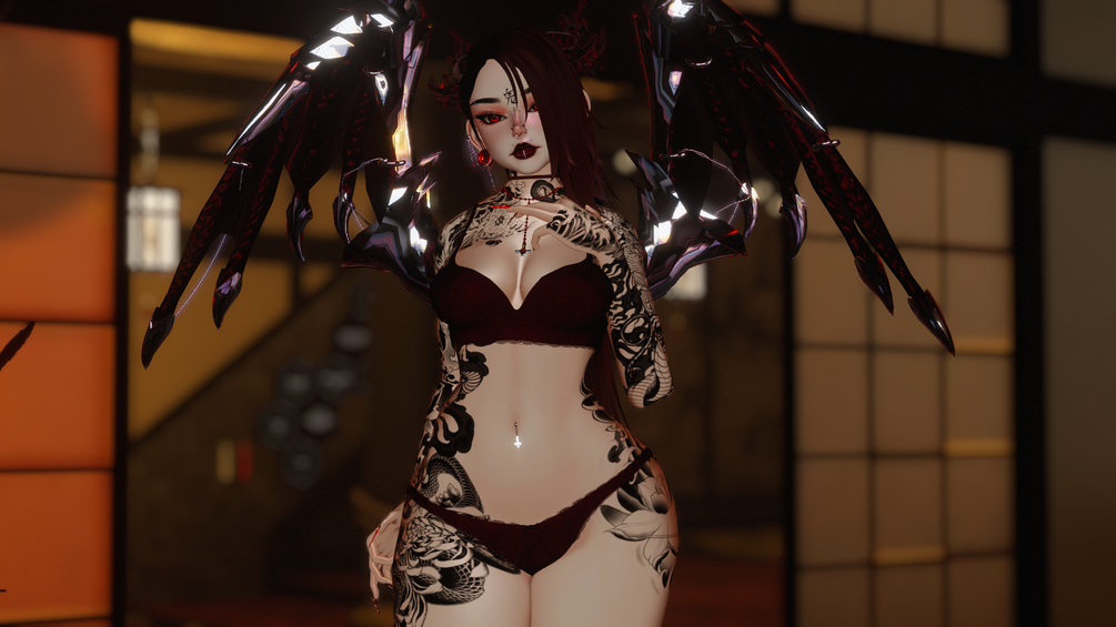 Jinxxy tags: mommy, dommy, dominant, stud, studded, edge, edgy, alternative, goth, punk, goth, demon, devil, succubus, sinner, wings, horns, female, lady, girl, woman