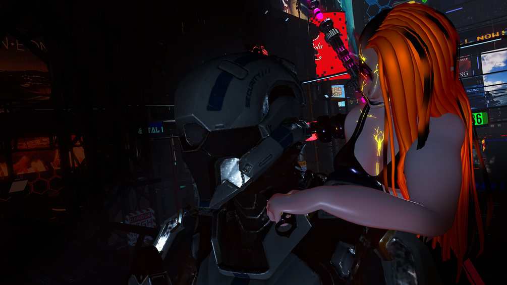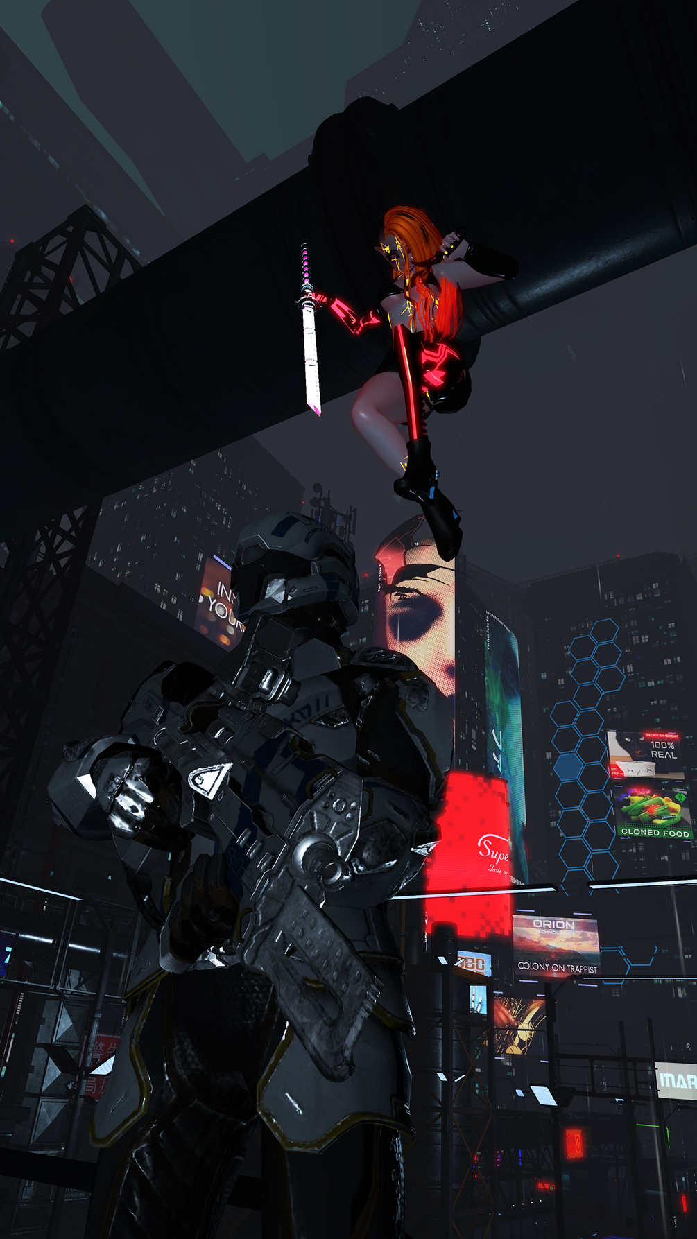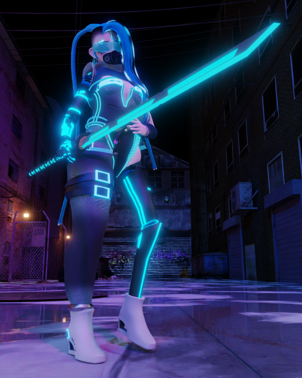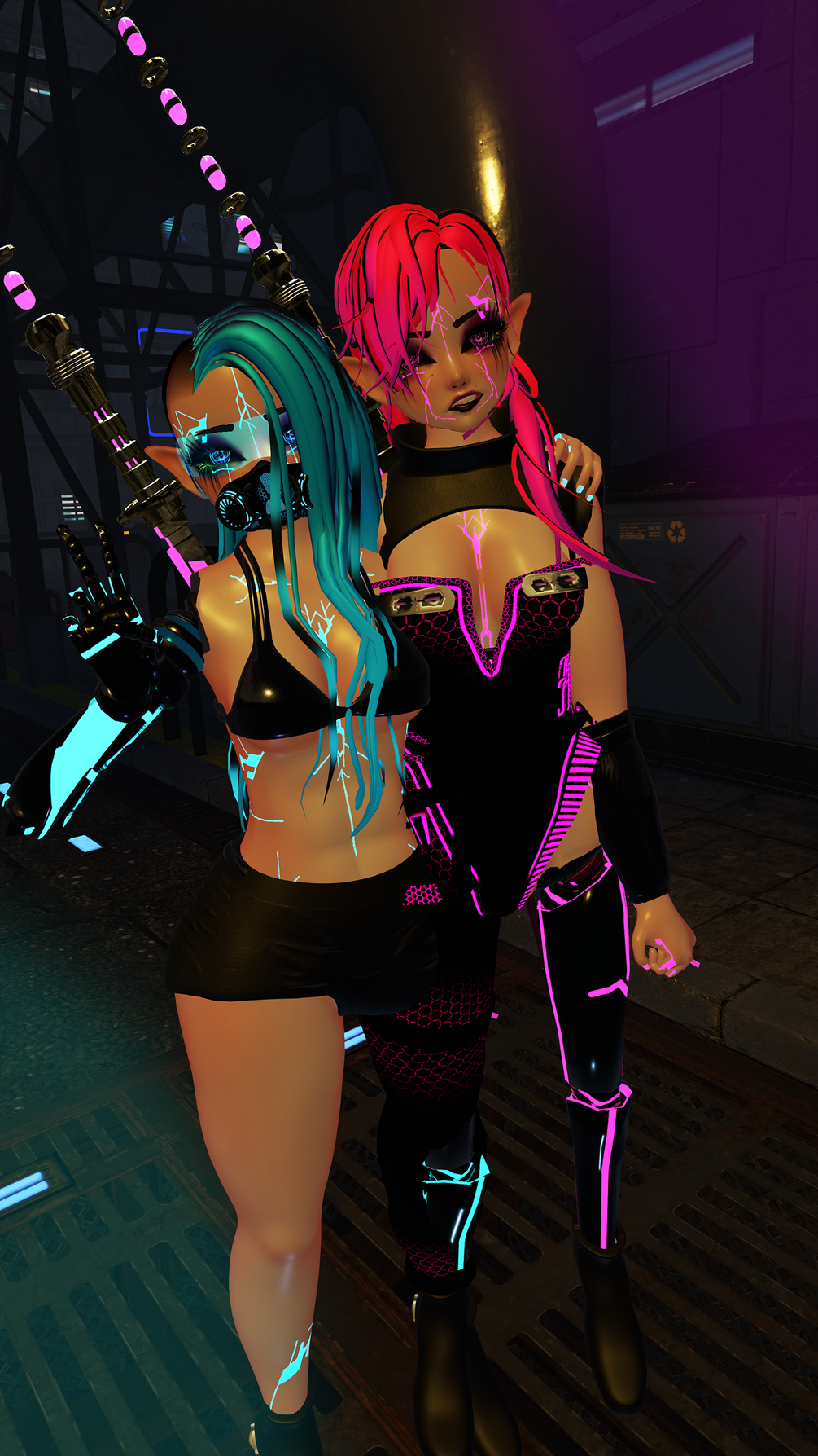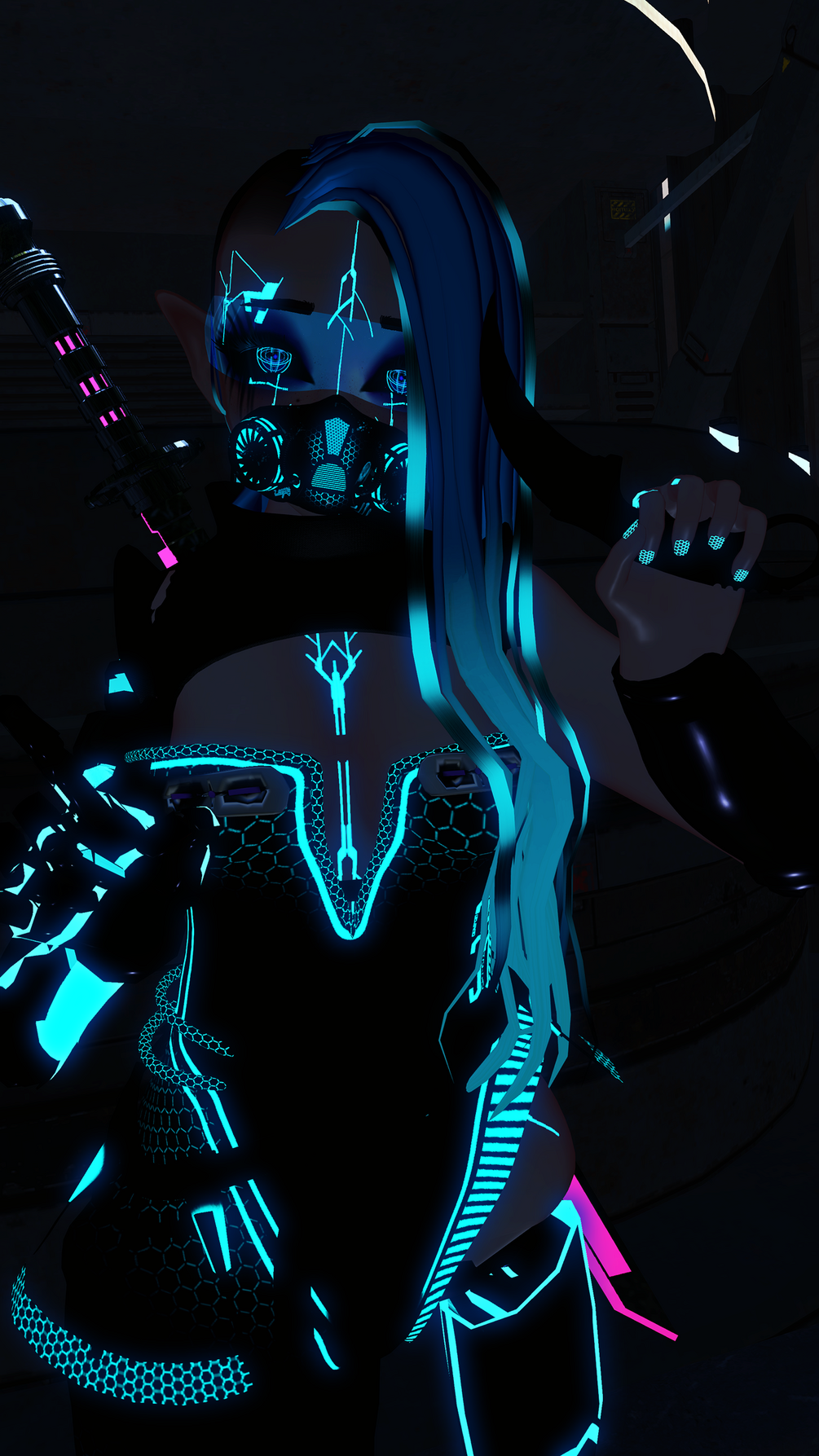 Head: Zinpia┊ Base: CUSTOM KITBASH of g2 by Battle Bunny & Tea's Heeled by teabeepea (Heavily Edited Do Not Reuse)┊ Face Texture: foxmatcha#1337┊ Undercut: Saikura┊Ronan Hair: The Oasis┊Twin Tails: Battle Bunny Mods┊Cyber G-Go Dancer, Cyber Dancer Suit, Cyber Air Breather & Tattoos: Eliza (Nitro)┊ Eye Texture: Lazy The Cat┊Cyber Spine: Ivy┊ Karambit: corat┊ Cyber Katana: Strasza┊ GoGo Loco: franada