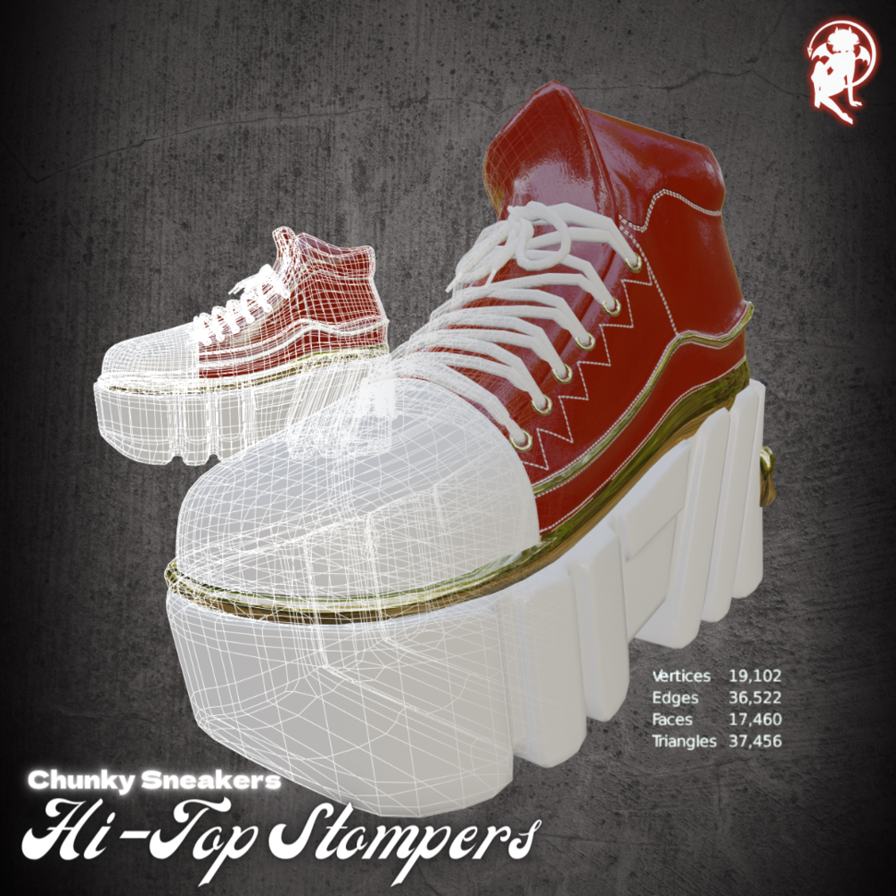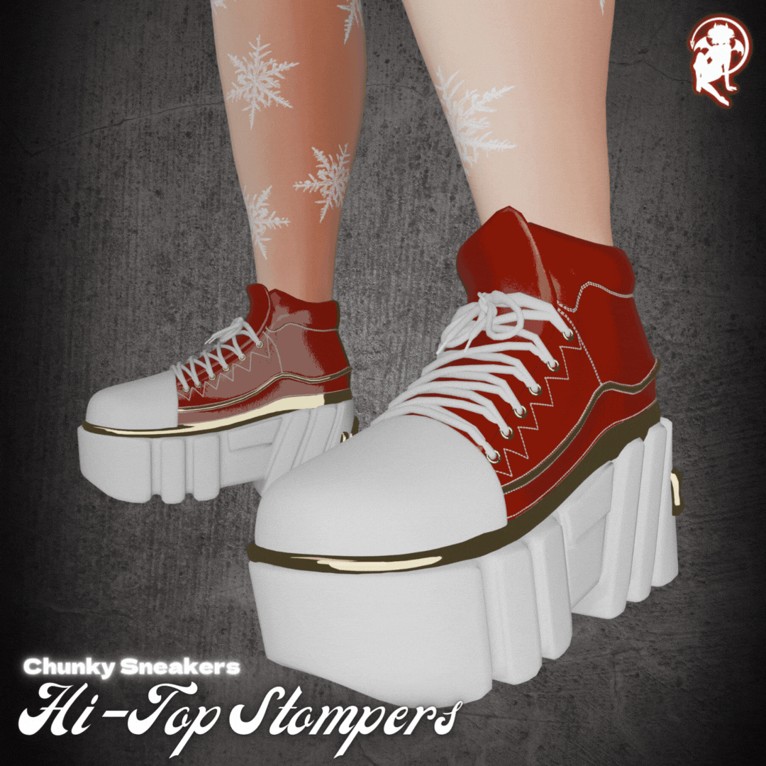 Jinxxy tags: devil, demon, succubus, goth, alt, alternative, sexy, female, girl, woman, womens, santa, christmas, yule, holiday, winter, saint, nick, krampus, comfy, cozy, sneakers, sneakies, trainers, tennis shoes, platform, chunky