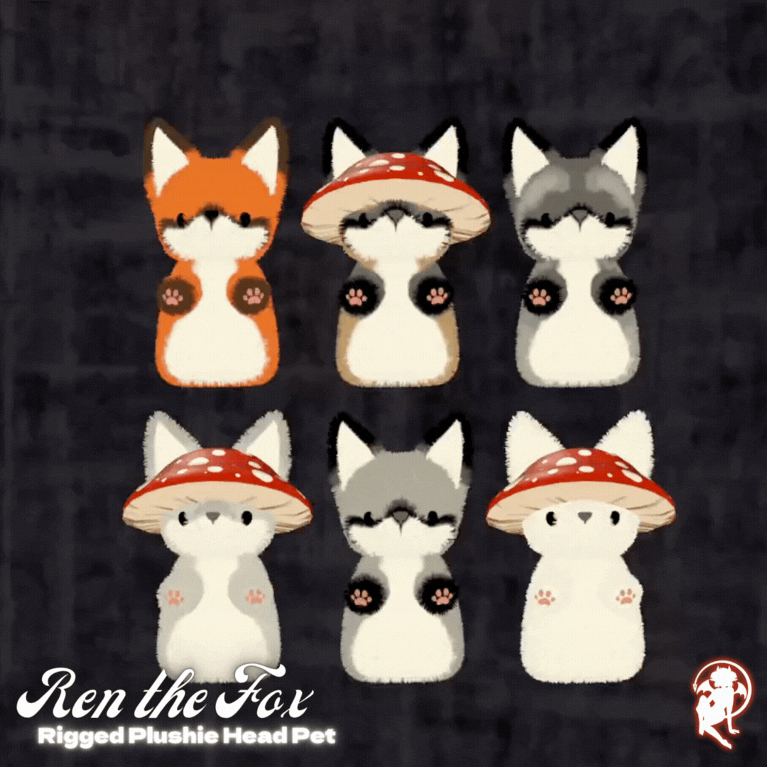 Jinxxy tags: cute, sweet, adorable, baby, love, plush, plushie, stuffed animal, pet, head accessory, heart, eboy, egirl, fox, vulpine, kitsune, wolf